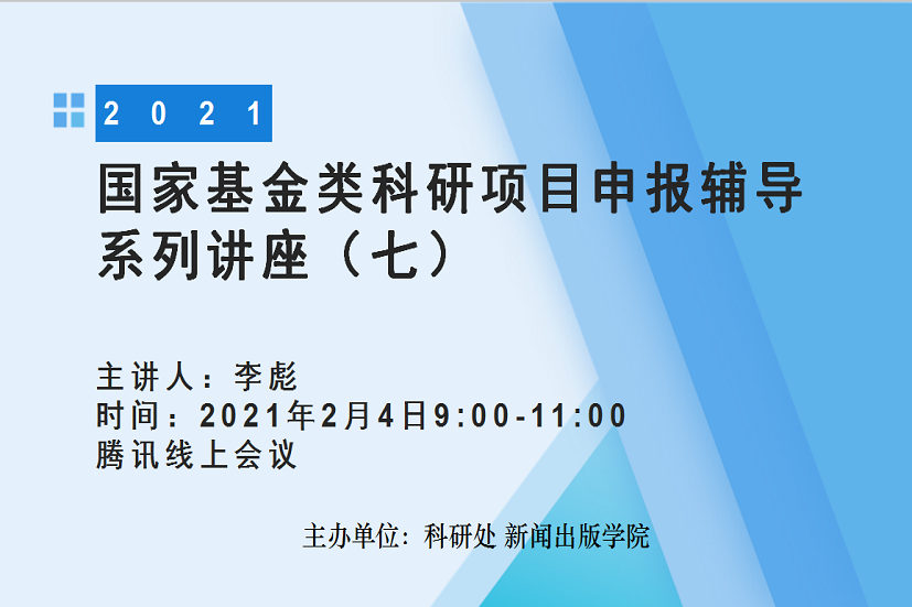 2021年度國家基金類科研項目申報輔導系列講座(七)
