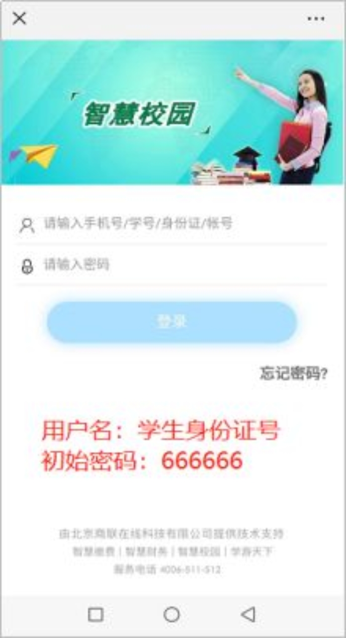 第三步:進(jìn)入登錄頁(yè)面,輸入用戶(hù)名(學(xué)生身份證號(hào))和密碼(初始密碼666666),點(diǎn)擊“登錄”,首次登錄需修改密碼(請(qǐng)牢記修改后的密碼)。