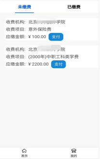 第五步:開始繳費(fèi),在首頁(yè)選擇“我要繳費(fèi)”,或者進(jìn)入“我的”界面,查看具體繳費(fèi)信息。點(diǎn)擊“支付”進(jìn)入繳費(fèi)流程。